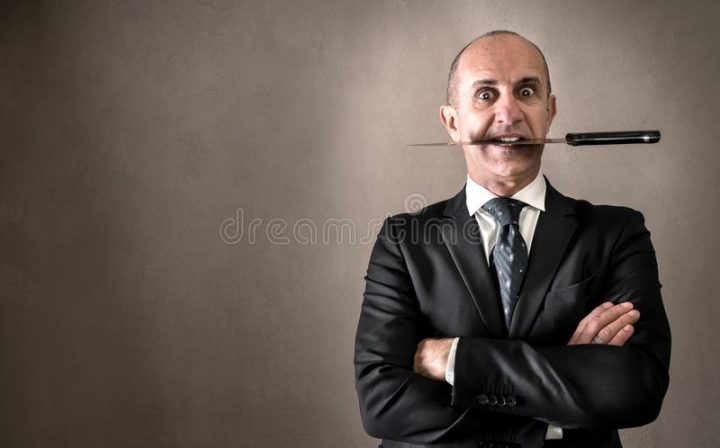 messer zwischen den zähnen