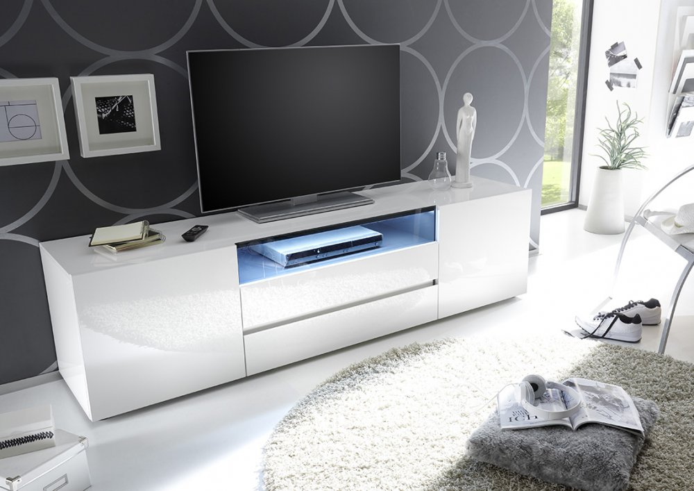 meuble tv blanc laqué pas cher