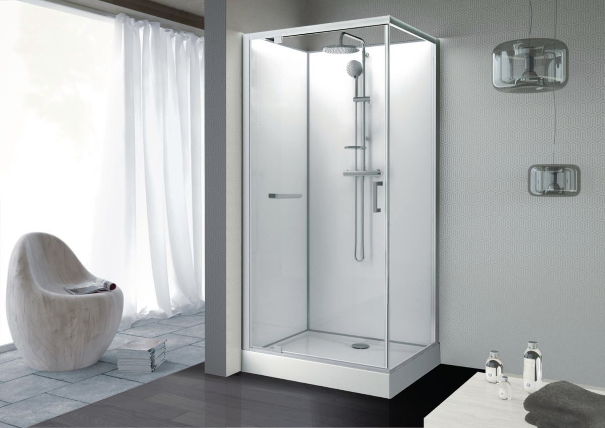 Cabine Rectangle Kara 100 X 80 Cm, Porte Pivotante, Verre Transparent Avantage, Fond Blanc Réf. L11Ka8R0401 destiné Cabine De Douche 80X100