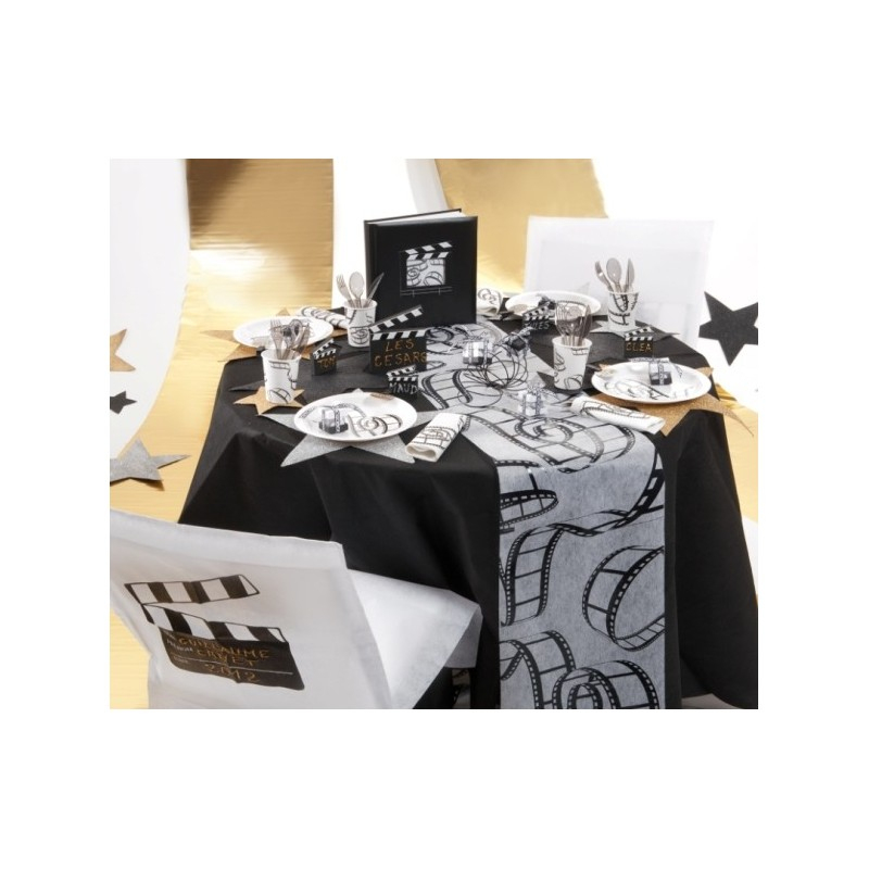 Chemin De Table Cinéma Intissé Blanc Noir dedans Chemin De Table Cinema