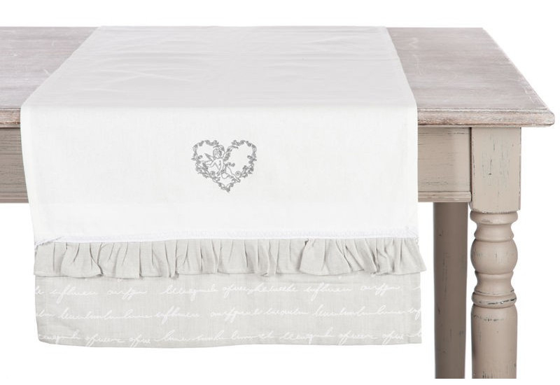 Chemin De Table Romantique Meridia Coton Blanc Et Gris destiné Chemin De Table Scandinave