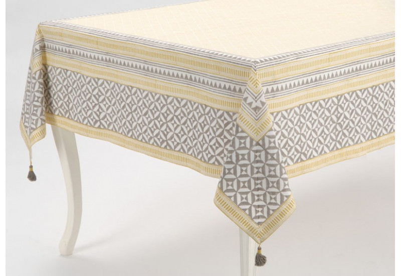 Nappe Rectangulaire Topaze Gris Et Jaune 150X250 Cm destiné Chemin De Table Scandinave