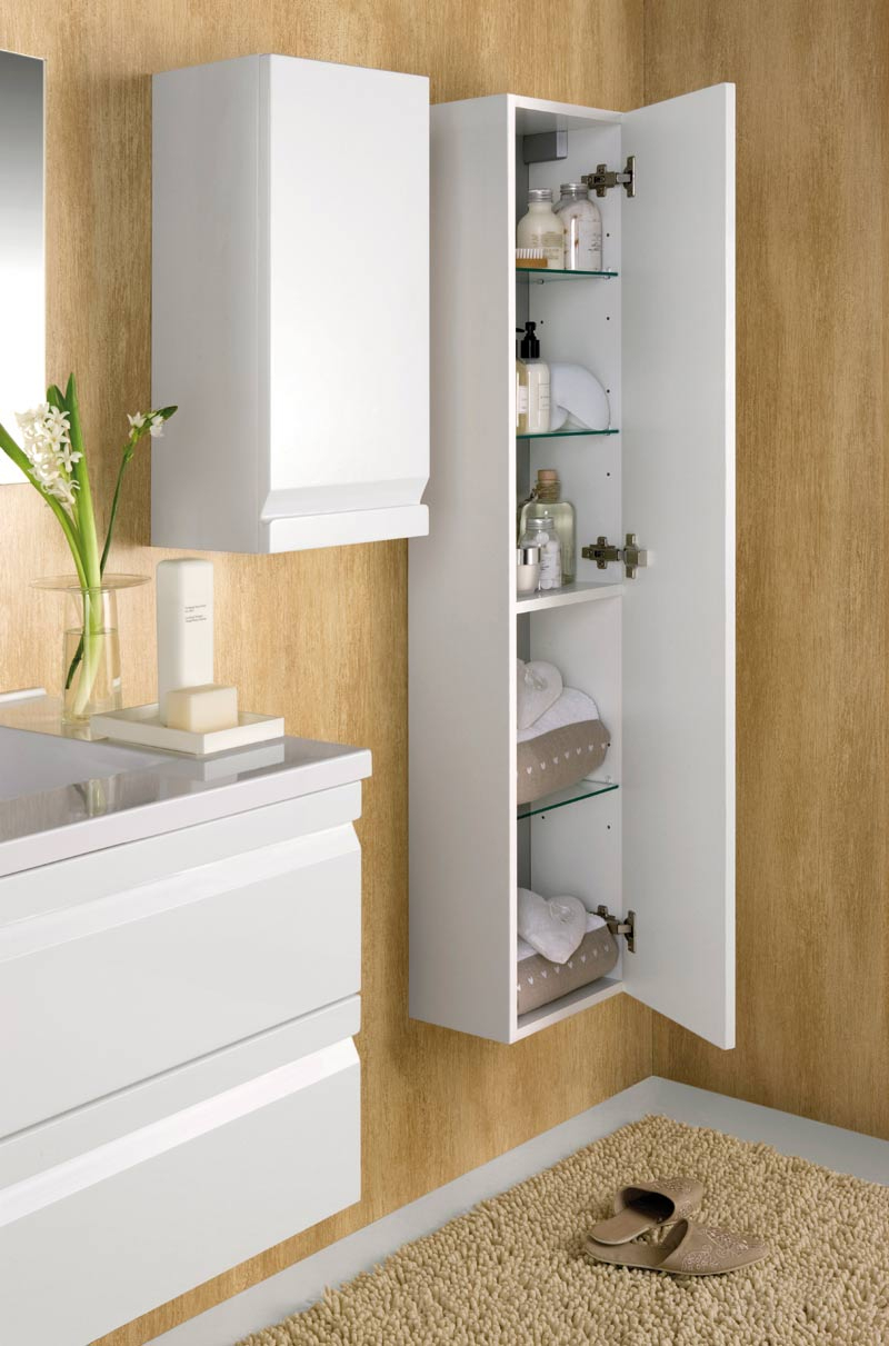 Gallery Ensemble Meuble Salle De Bain Solco2 80 Cm En Finition Blanc Avec Miroir. Spot Led Et Colonne De Rangement concernant Colonne Salle De Bain Suspendu