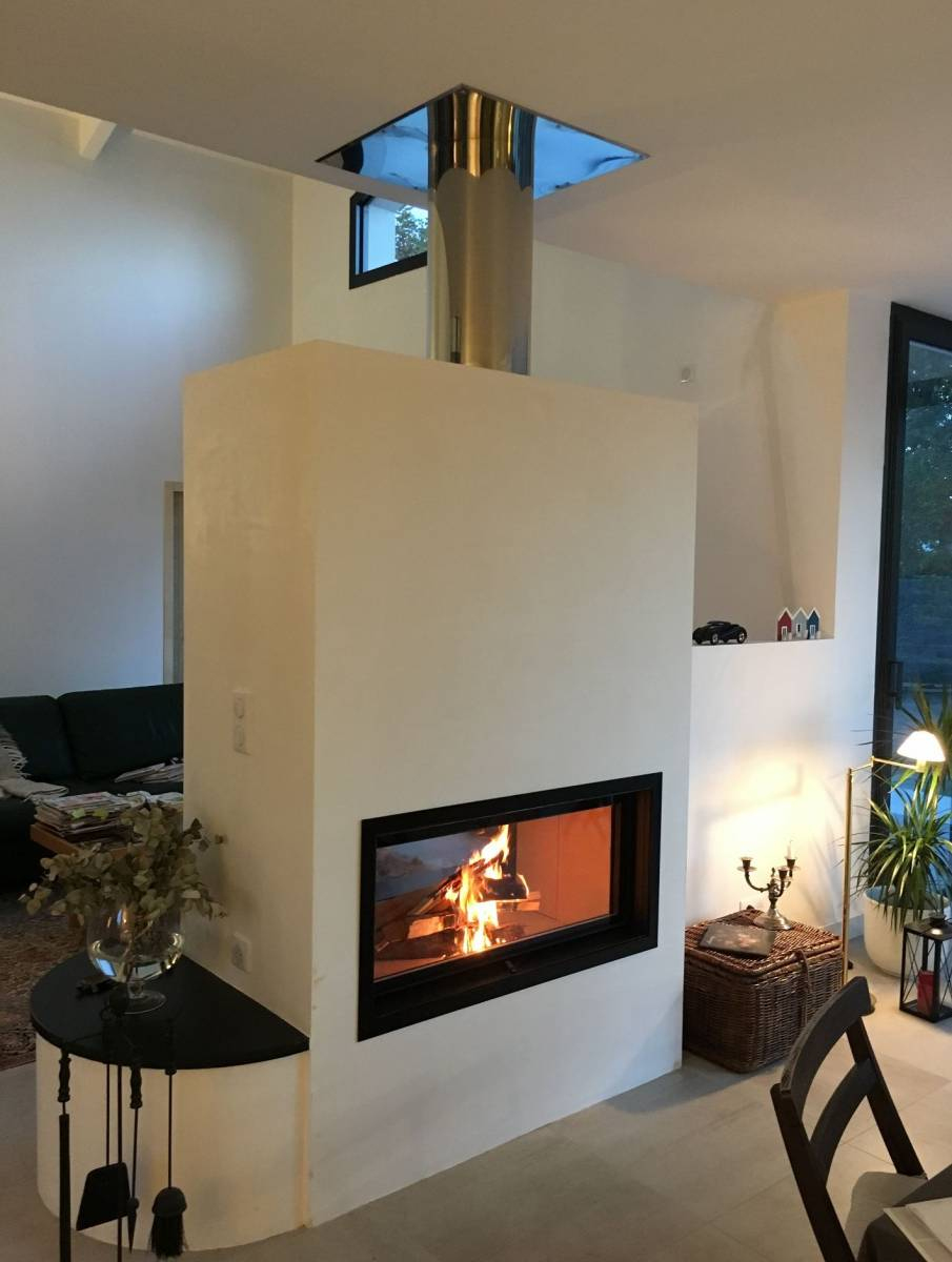 Cheminée Moderne À Double Face Au Milieu D'Une Pièce À dedans Habillage Cheminée Moderne
