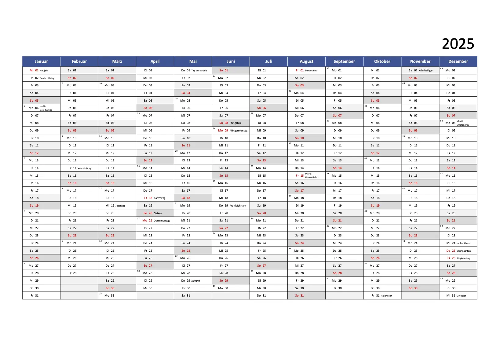 kalenderübersicht 2025 zum ausdrucken By adminPosted on April 2, 2026 Gallery kalenderübersicht 2025 zum ausdrucken