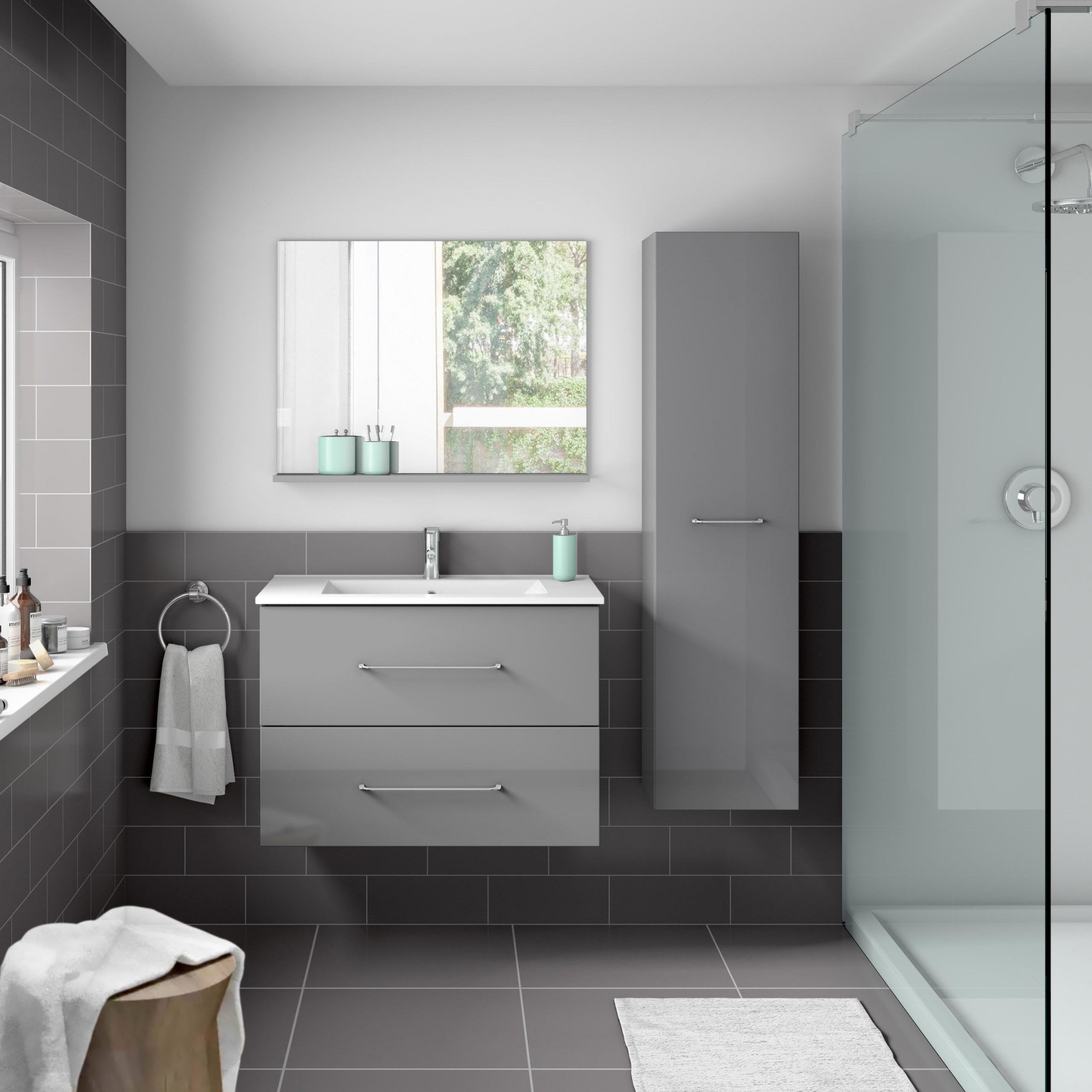 Meuble De Salle De Bains L.69.5 X H.57 X P.45 Cm, Gris, Clik | Leroy Merlin serapportantà Leroy Merlin Plan De Travail Salle De Bain