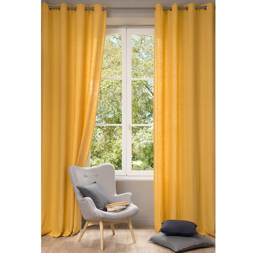Rideau En Lin Lavé Jaune 130 X 300 Cm | Maisons Du Monde encequiconcerne Maison Du Monde Rideaulin