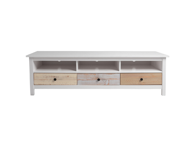 Meuble Tv Magda Blanc Et 3 Tiroirs Multicouleurs En Pin destiné Meuble Levi Conforama