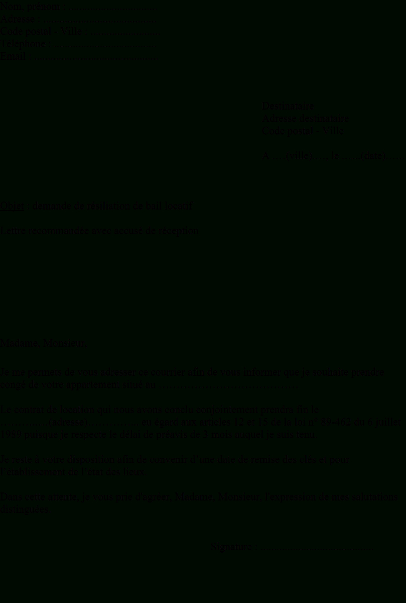 Exemple De Lettre Résiliation De Bail Pour La Location D'un à Modèle Bail Meublé