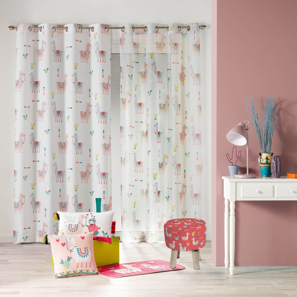 Rideau À Œillets Happy Lama Motif Flèche Cactus Multicolore concernant Rideau De Porte Lanière Plastique Gifi