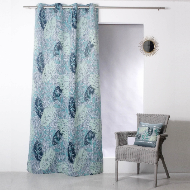 Rideau Occultant Motif Vegetal Bleu Et Beige à Rideau Motif Bleu