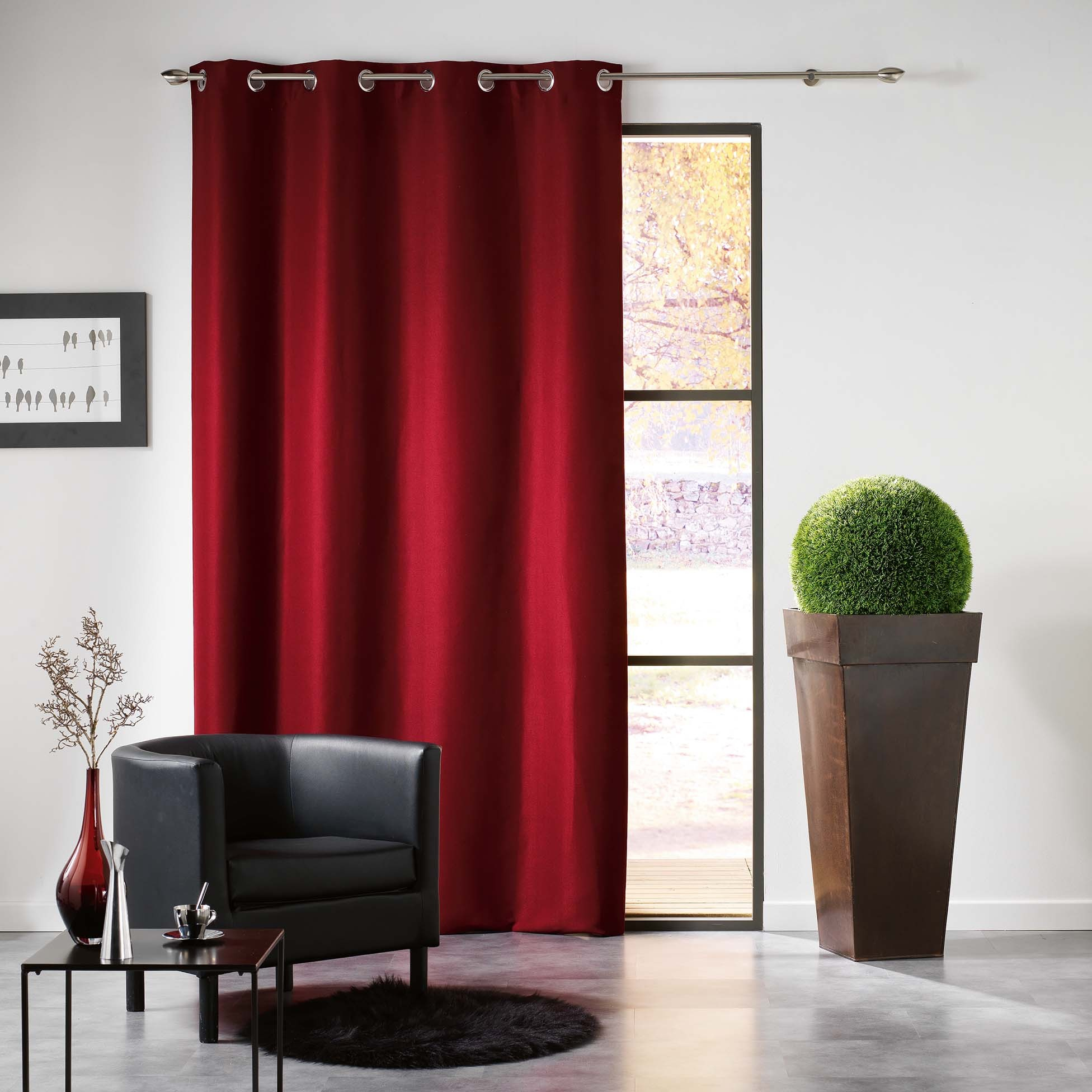 Rideau À Œillets Occultant Bordeaux Mezzo avec Rideau Perle Bois Gifi