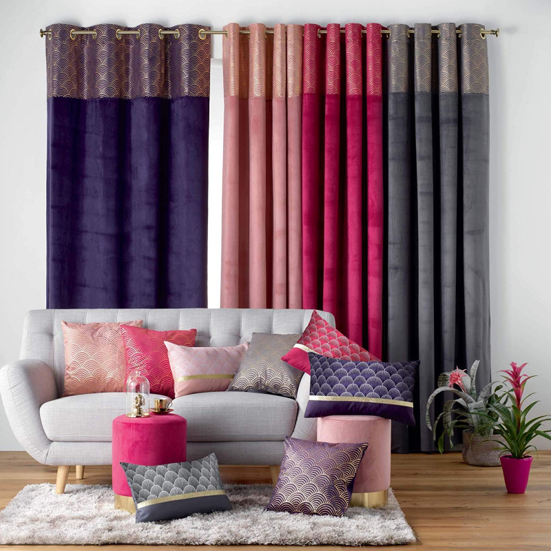 Rideau À Oeillets 140 X 240 Cm - Velours - Top Imprimé Or concernant Rideau Velours Rose