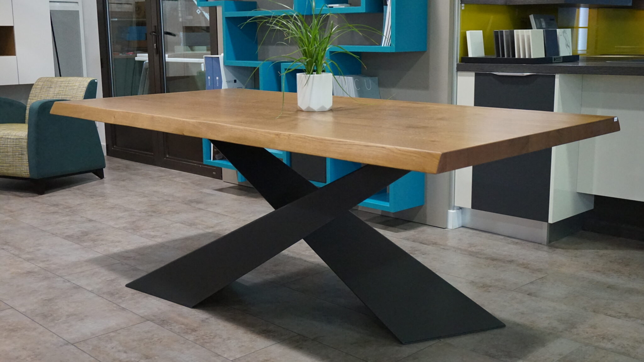 Table-Bois-Massif-Pied-Metal – Conception Et Aménagement serapportantà Table Salle A Manger Metal Et Bois