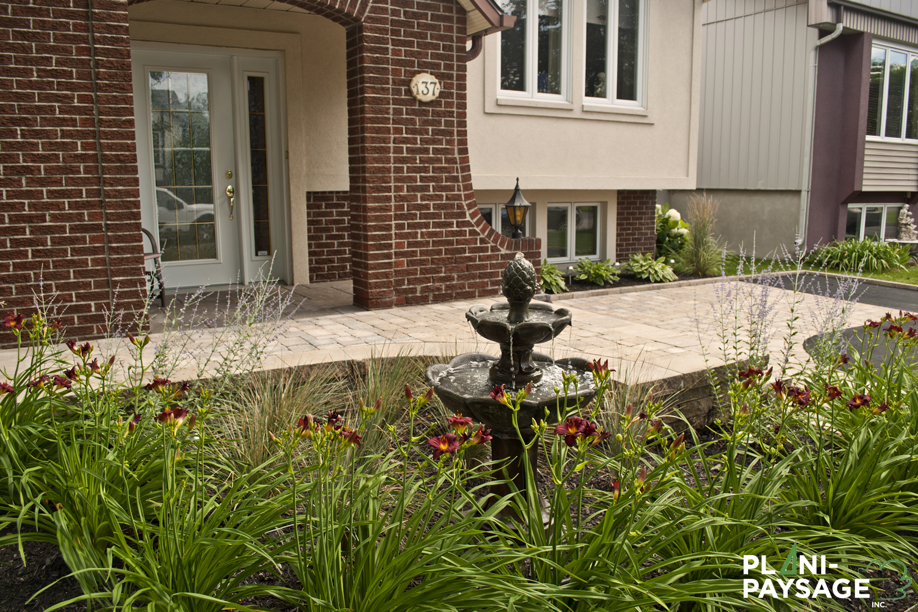 Fontaine Classique Devant Maison, Avec Palier En Pavage à Terrassement Devant Maison