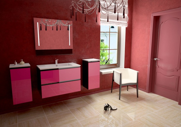 meuble salle de bain rose