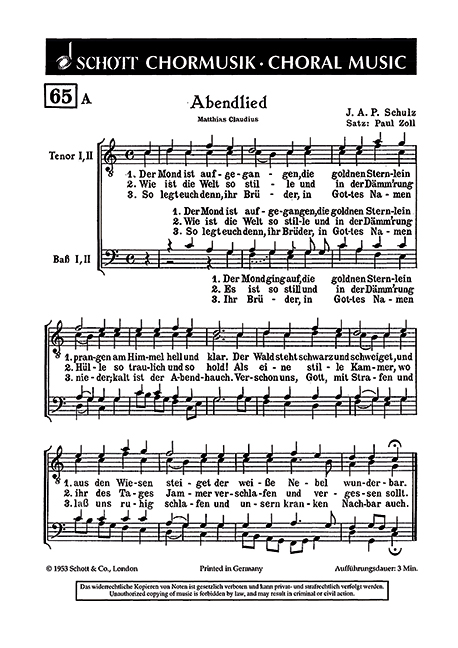 Nun ruhen alle wälder, vieh, menschen, städt´ und felder, es schläft die ganze welt;